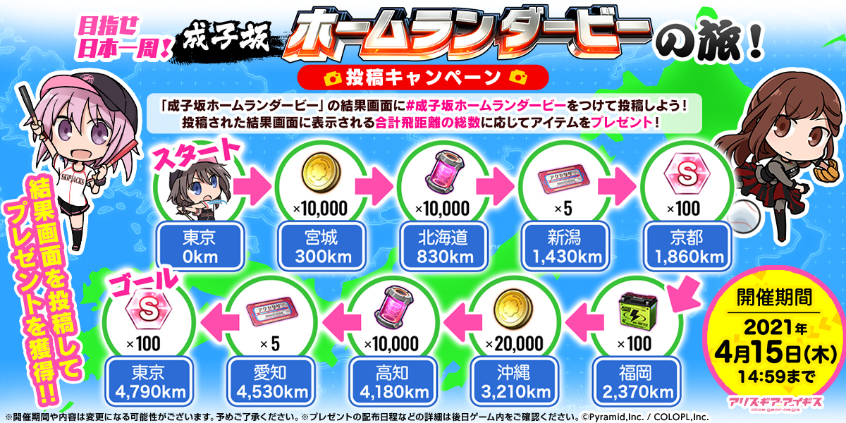アリス ギア アイギス 今度は野球ゲーム 成子坂ホームランダービー を公開 コロプラのプレスリリース